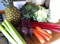- Bought a bunch of lovely veg at the organic veg shop - aren't they gorgeous! I just love the vibrant colours of veg, the red-pink of beetroot juice just makes me happy